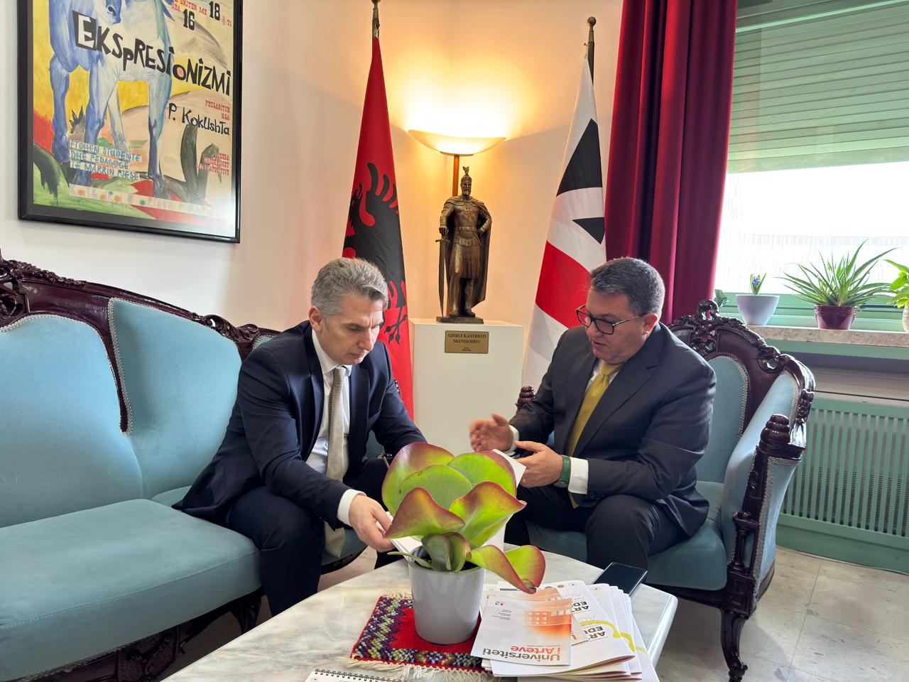 Ditën e enjte, më dt.15.01.2025, Rektori i Universitetit të Arteve, Prof. Dr. Erald Bakalli mirëpriti në zyrën e tij Rektorin e Universitetit privat “Western Balkans University”, Prof. Dr. Ferdinand Gjana.