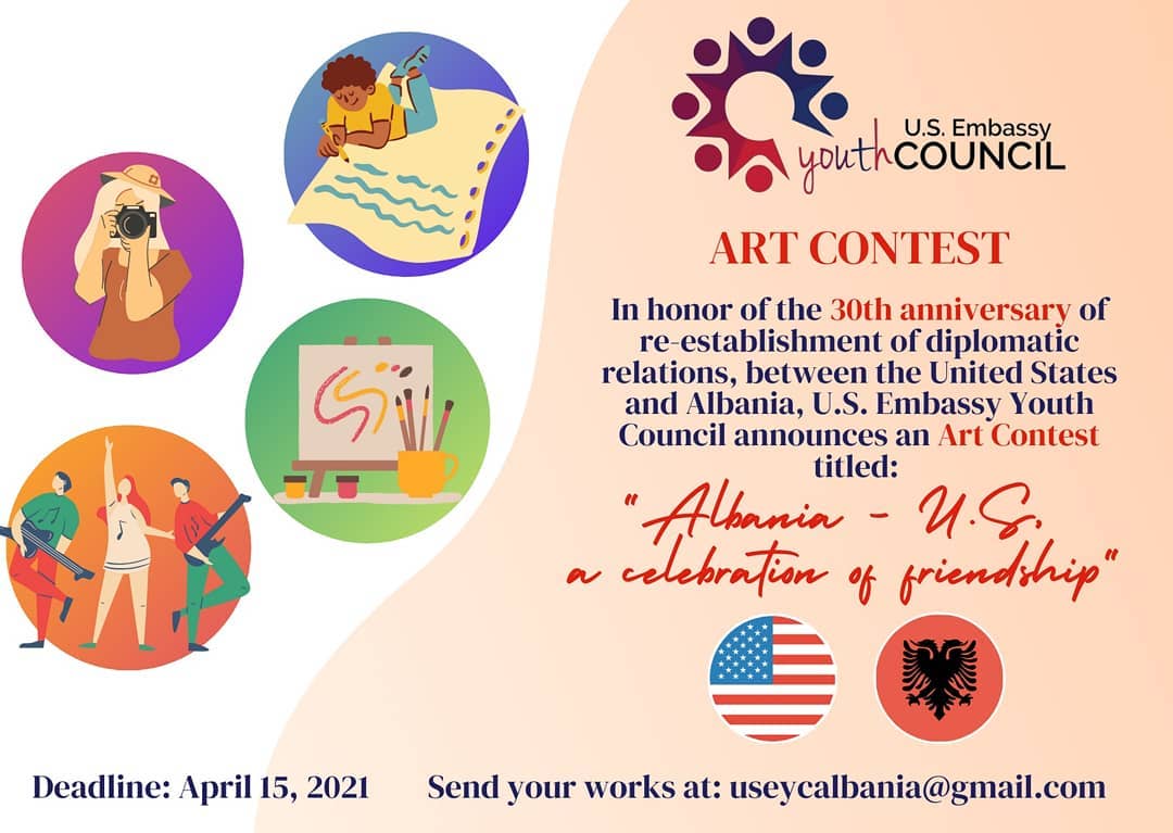 Me rastin e 30 vjetorit të rivendosjes së marrëdhënieve diplomatike SHBA-Shqipëri, Këshilli Rinor i Ambasadës Amerikane ka hapur thirrjen për konkursin artistik "Albania-U.S. a celebration of friendship".