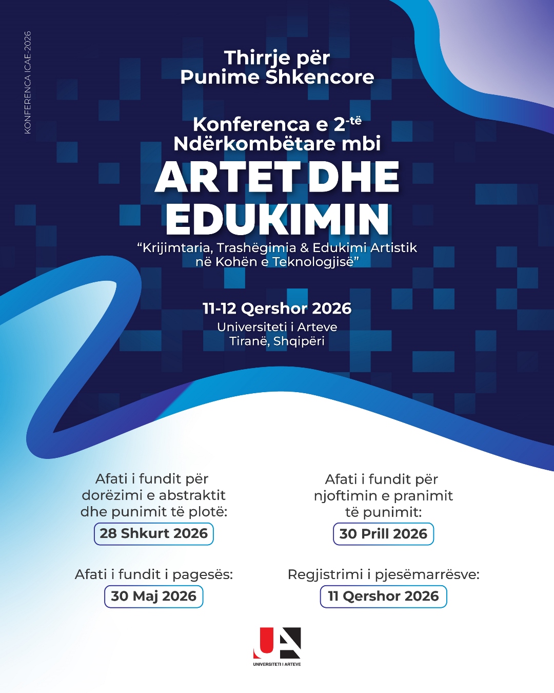 Adresa për depozitimin e punimeve: conference@uart.edu.al