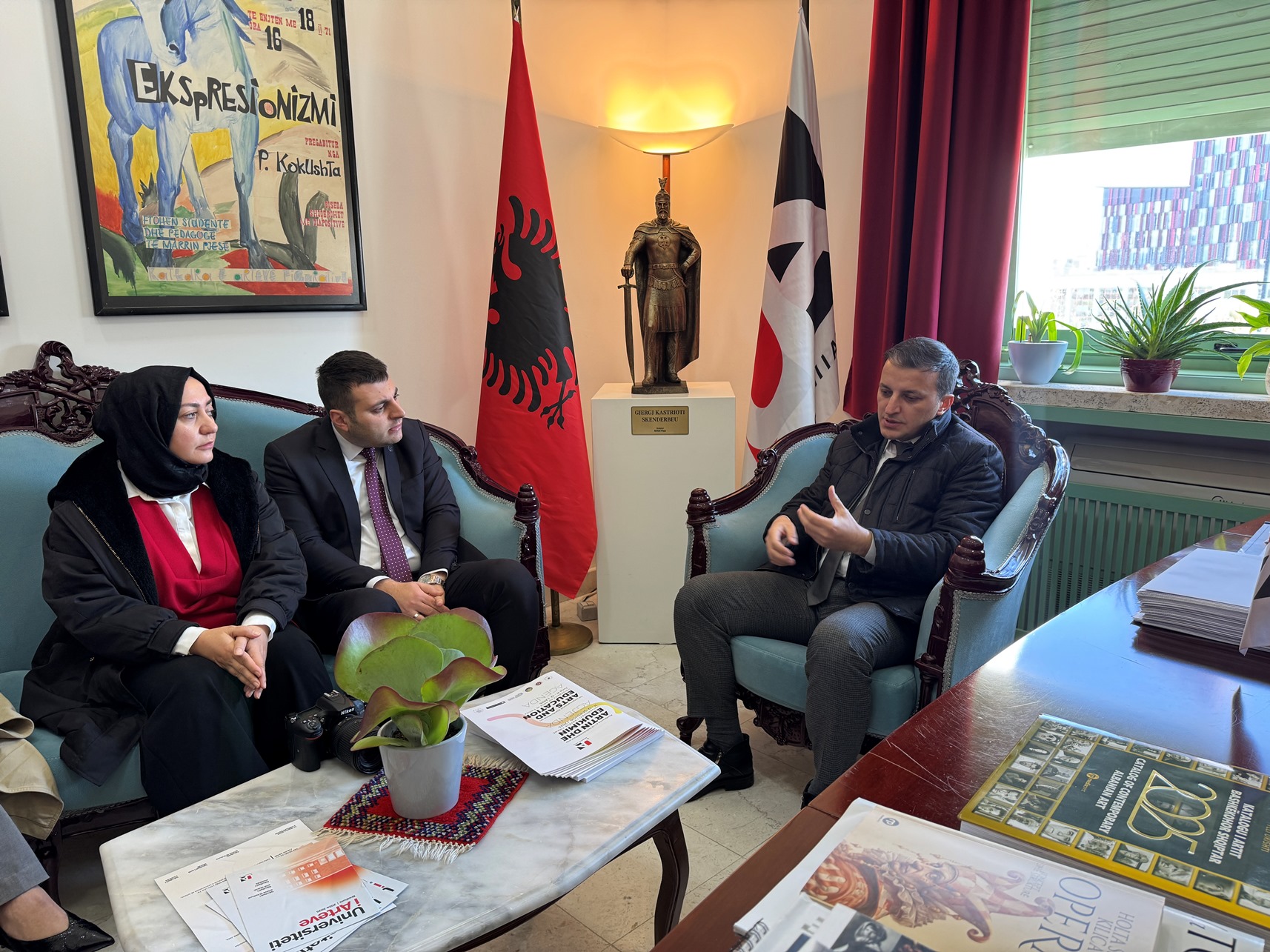 Ditën e mërkurë, më datë 25.02.2026, Rektori i Universitetit të Arteve, Prof. Dr. Erald Bakalli, i shoqëruar nga Zëvendësrektori, Prof. Arian Paço, mirëpriti në zyrën e tij z. Mustafa Ata, Koordinator i TIKA-s në Shqipëri (Tiranë), znj. Nagehan Uslu, Zëvendëskoordinatore e TIKA-s, si dhe z. Oğuzhan Sakoğlu, Drejtor i Institutit Yunus Emre, shoqëruar nga stafi i tyre përkatës.