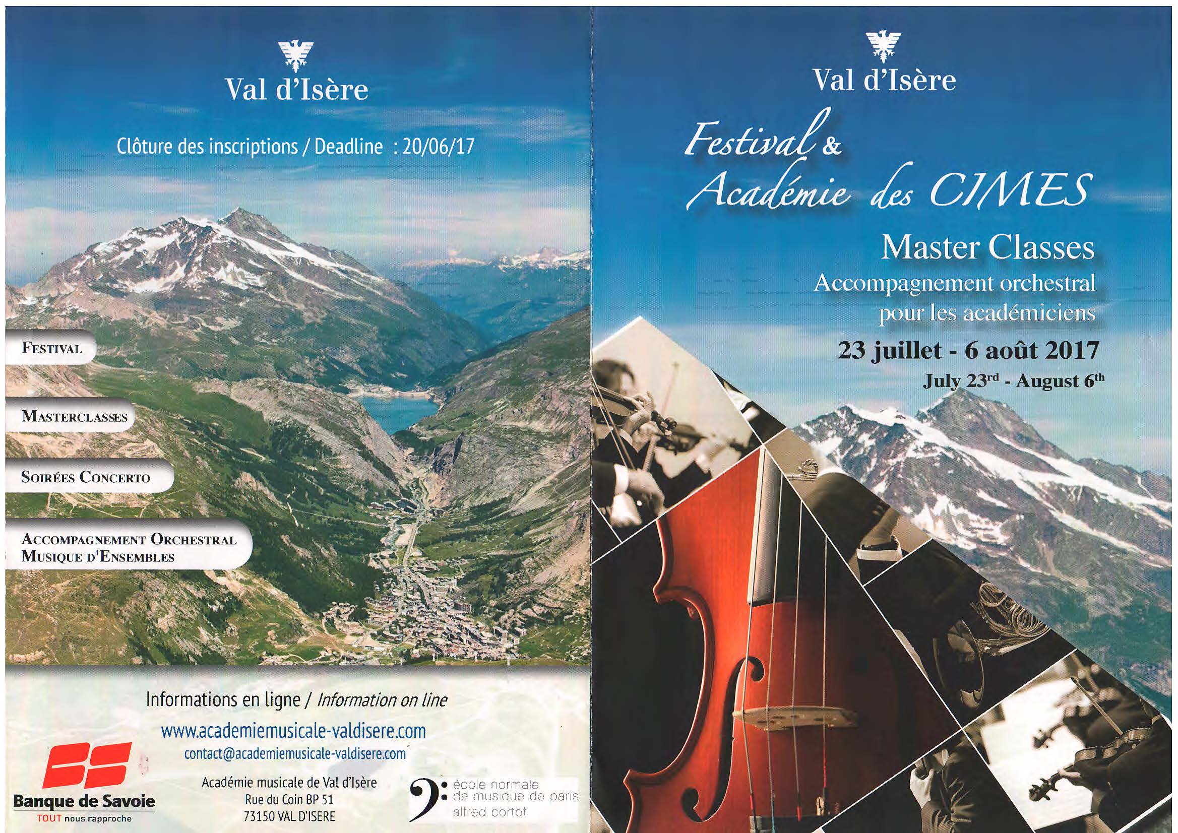 Nga datat 23 Korrik deri më 06 Gusht 2017 në Val d’Isere, Francë, zhvillohet “Festival & Academic des CIMES”.